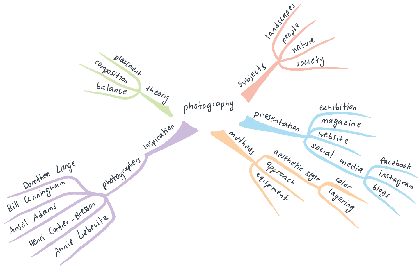 Mind Mapping is a technique that produces ideas by association and has been my go-to method for a while. I use it to map out my thoughts whenever I approach a project or when I need to confirm the logic or steps of something. Tony Buzan popularised the mind mapping technique back in 1974 and introduced his readers to mind maps.